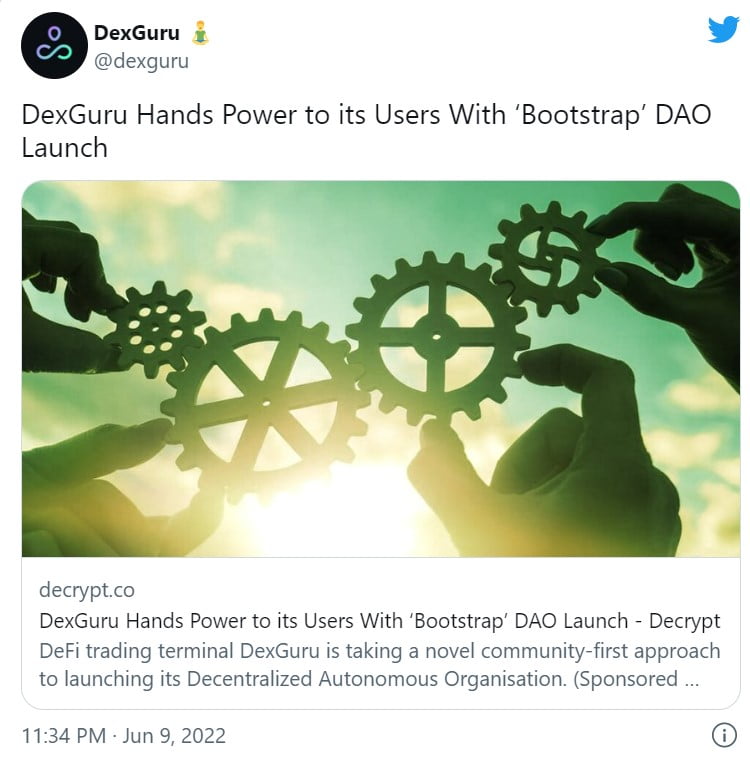On June 9, DexGuru, a DeFi trading terminal, introduced its Decentralised Autonomous Organisation with a revolutionary community-first strategy.